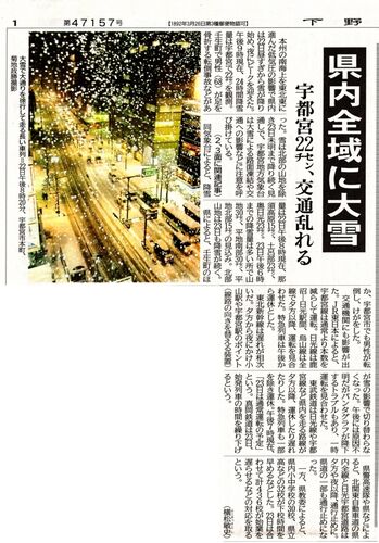 大雪警報が発令された22日に降りはじめた雪は、ここ鹿沼の地にも大量の雪を残していった。 宇都宮気象台発表 1月22日 19時42分 鹿沼市に「大雪警報」、「なだれ注意報」、「着雪注意報」を発令 22日午後から降りはじめた雪は、日が変わった23日朝には周囲を…