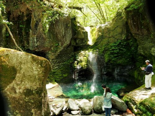 快晴の暑い日となった5月24日(金)、″まぼろしの滝″で有名な「おしらじの滝」に写真を撮りに行きました。 この日もたくさんの観光客が訪れ、狭い駐車場は満杯状態で、駐車区画外の邪魔にならない空きスペースにも車を停めていました。 おしらじの滝は、栃木…