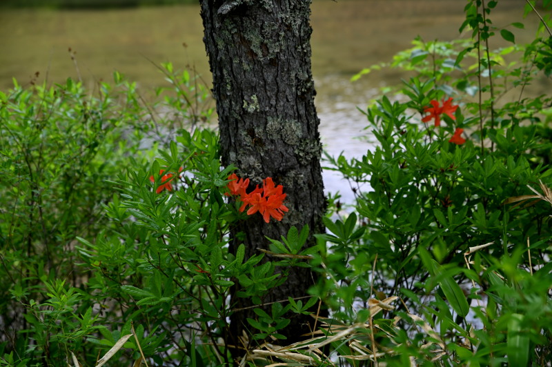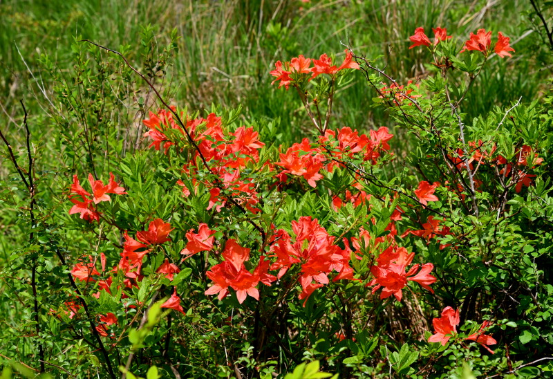 レンゲツツジもところどころで真赤な花を咲かせています。